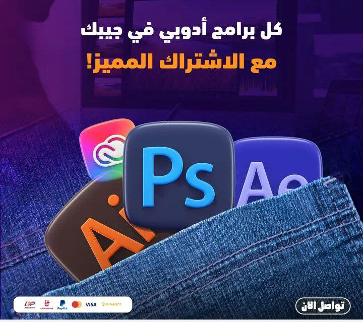 أبدأ شغلك صح وأحصل على اشتراك ادوبي رسمي بسعر لا يقبل المنافسة. 👌☑️